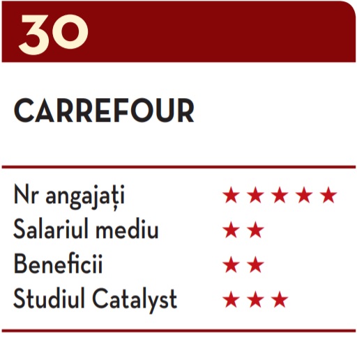 În prezent, Grupul Carrefour este unul dintre cei mai mari angajatori de pe piața românească, numărul salariaților ajungând la 18.000 de persoane.