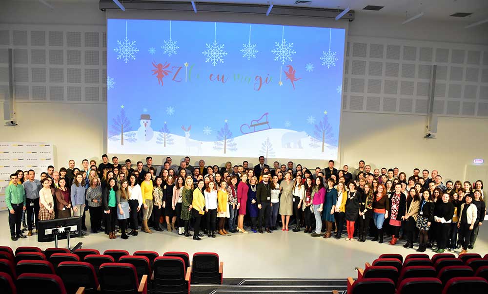 Cei 500 de copii, însoțiți de părinții lor și de voluntari, au luat parte la ateliere tematice și au cântat colinde de sezon, sub bagheta dirijorală a unui grup de angajați, pasionați de muzică și instrumente muzicale.